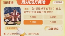 《淘宝》大赢家10月11日问答-史上最大的火锅盛宴在何朝代?